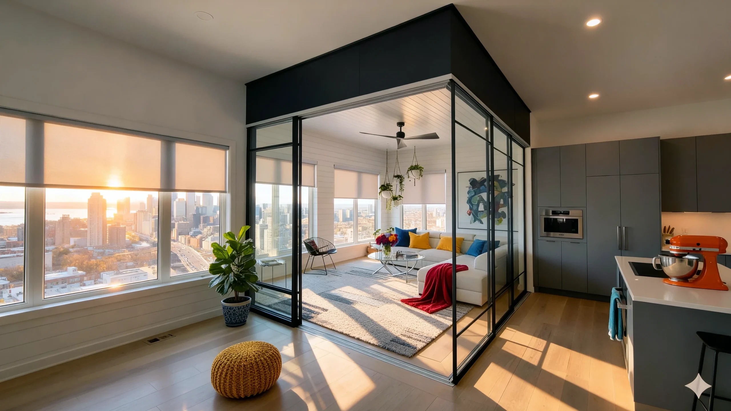 Smart, space‑saving glass partitions that preserve light, improve privacy, and adapt rooms for work or relaxation—designed for condo living.