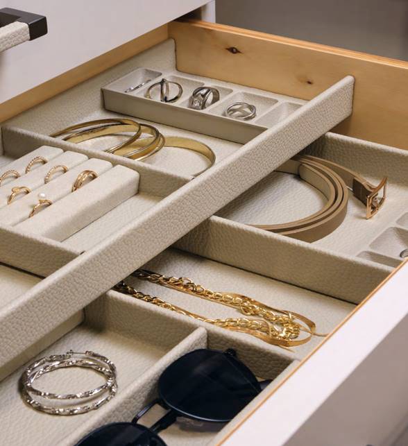 Accessories like jewelry, handbags, scarves, and belts need designated storage to stay organized. Consider: