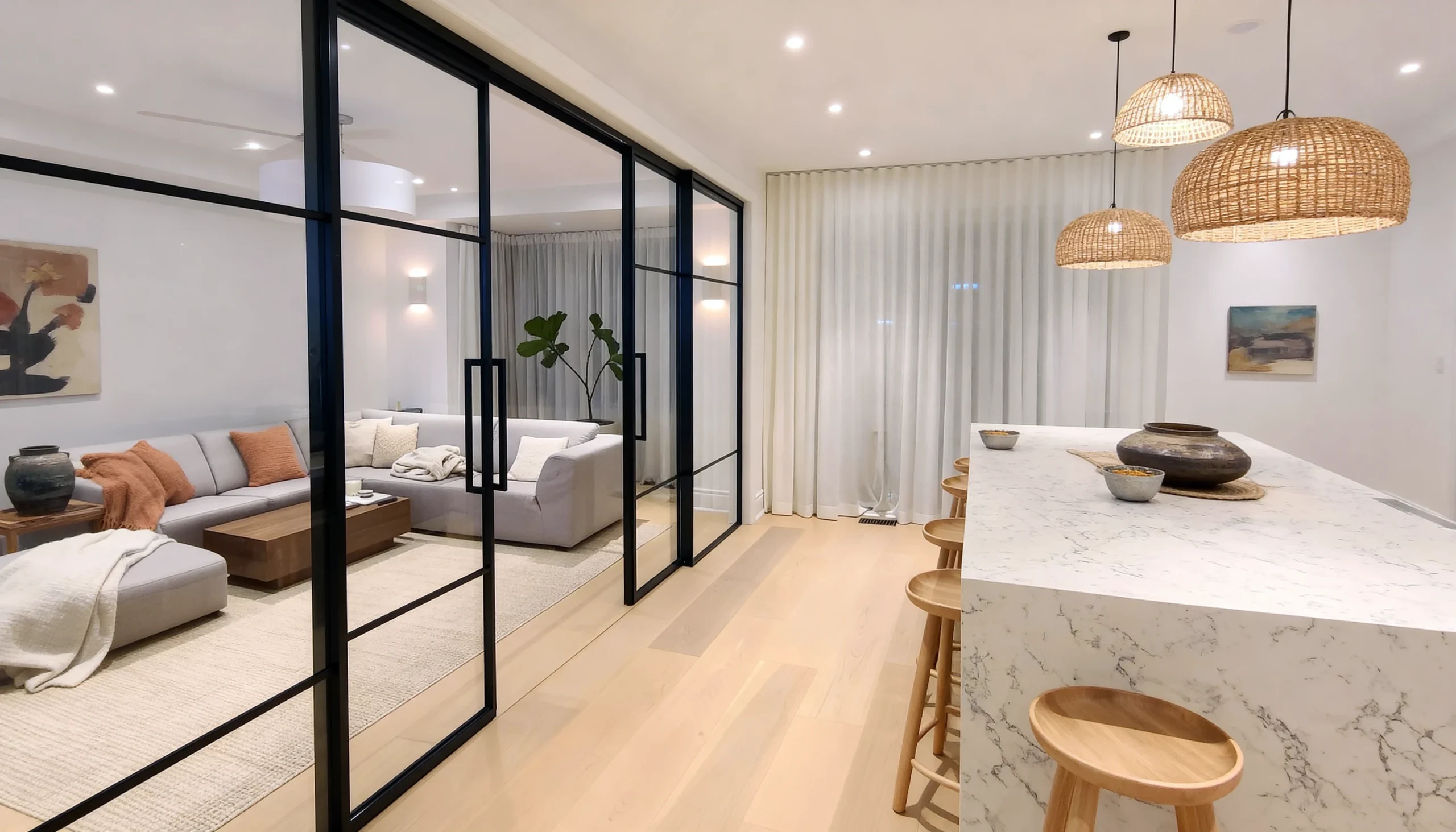 Redefine the functionality and flow of your home with Komandor’s architectural partitions. Our custom-designed systems utilize sleek framing and versatile glass inserts to create flexible boundaries, allowing you to establish independent zones for work or privacy while preserving visual connection and maximizing natural light.